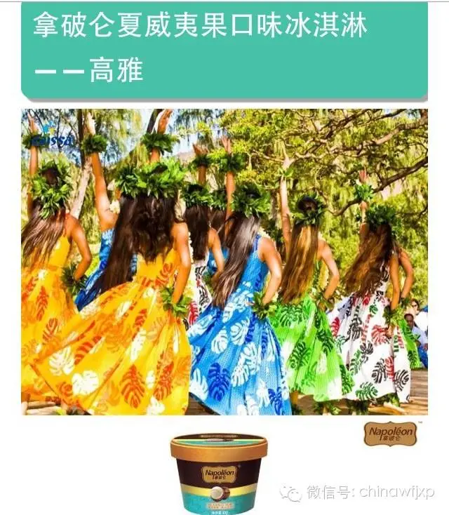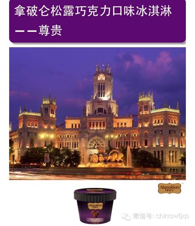 拿破仑是五丰冷食在2012年倾力打造的高档冰淇淋品牌,蕴含着“尊贵、优雅、冒险”的品牌个性,产品主推法式口味冰淇淋,并从原材料选择到生产工艺都追求产品的“天然、纯正、健康、高品质”,让消费者真正享受高品质的冰淇淋美味。从2012到2014的两年重点推广,“拿破仑”品牌的市场,业已培育成熟,并获得了良好的市场销量。2015年,以法式浪漫为主导的王牌产品加入,将会再次擦亮品牌。4种全新口味新口味的加入,组成五丰冷食最具代表的“法式甜蜜”,满足你夏日中的全部渴望,带给味蕾一趟又一趟的奇妙体验。
