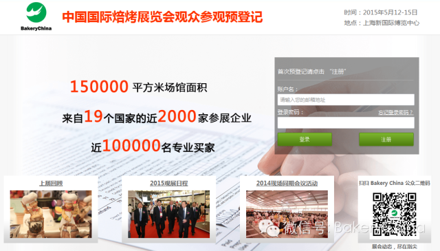 方法二:关注中国国际焙烤展览会官方微信公众帐号:BakeryChina,进行微信手机端“观众预登记”。