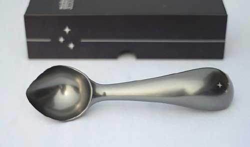 这款新型冰淇淋勺被命名为“午夜勺”,据说是自从1897年冰淇淋勺首次被Alfred L Cralle发明后的第一次设计上的革新,它的手柄呈弯曲的流线型,让人在挖冰淇淋时更容易使上劲儿。