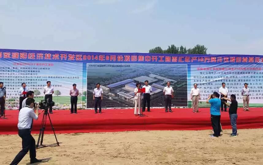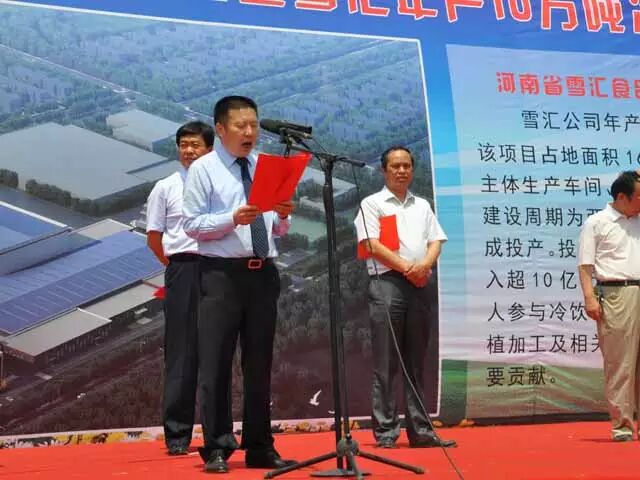 在2014年6月28日雪汇公司年产十万吨冷饮项目奠基仪式上,中国焙烤食品糖制品工业协会冷冻食品专业委员会、濮阳市开发区四大班子领导及相关部门、设备厂家代表、其他雪汇合作方代表及雪汇职工共同参加。在奠基仪式上,河南省雪汇食品有限公司董事长张峰作奠基仪式发言,中国焙烤食品糖制品工业协会冷冻食品专业委员会秘书长茅金妹代表协会发言,并参与奠基仪式。