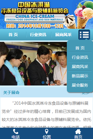 经过一个星期的努力和不断的调试,中国冰淇淋冷冻食品设备与原辅料展览会的微官网和微信的接口搭建工作已基本完成。您可通过点击屏幕下方的接口中任意一个进入微官网。