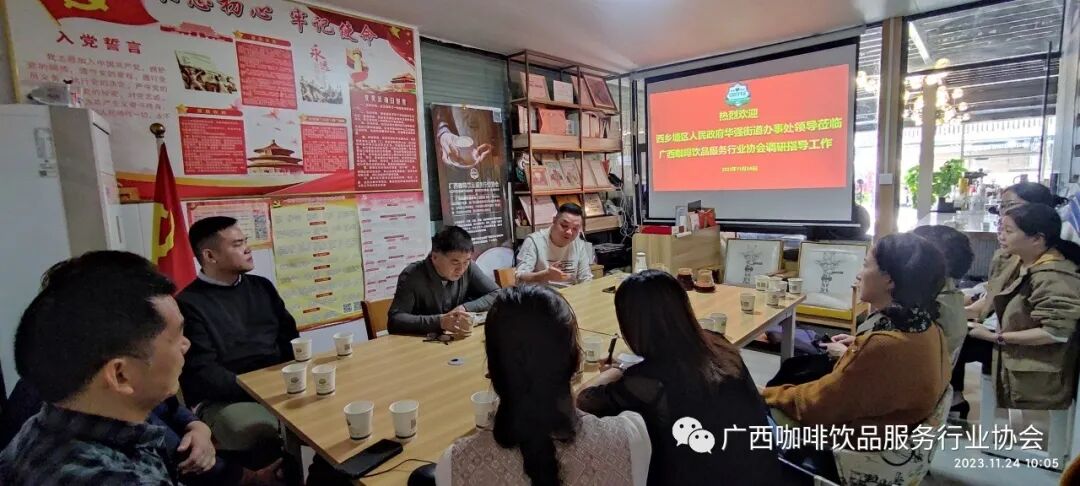 11月24日上午,西乡塘区人民政府华强街道办事处党工委书记、人大工委主任黄英玲及其校企相关负责人一行8人莅临广西咖啡饮品服务行业协会开展“推进产教融合 搭建校企业平台”走访调研座谈会活动,对协会工作建设给予了肯定。