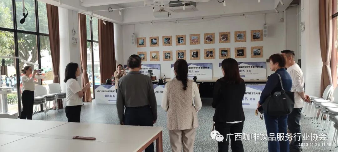 在调研广西咖啡饮品服务行业协会发展历程、运营组织、未来趋势后,就校企合作等方面开展主题座谈探讨交流。大家围绕辖区“三华”商圈特色资源优势,探索创新产教融合发展新路子,搭建好院校、企业与政府的产教合作交流平台。充分整合发挥城区资源优势,共同推动城区经济社会高质量发展。