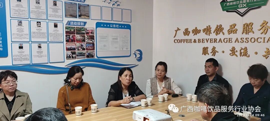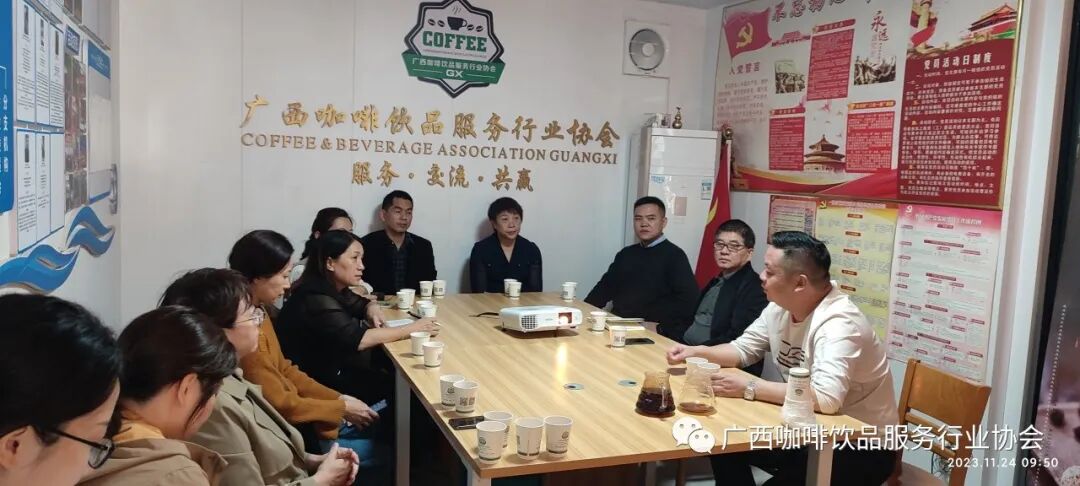 广西咖啡饮品服务行业协会党支部书记玉保钢,常务副会长兼秘书长刘维松陪同参访并座谈。