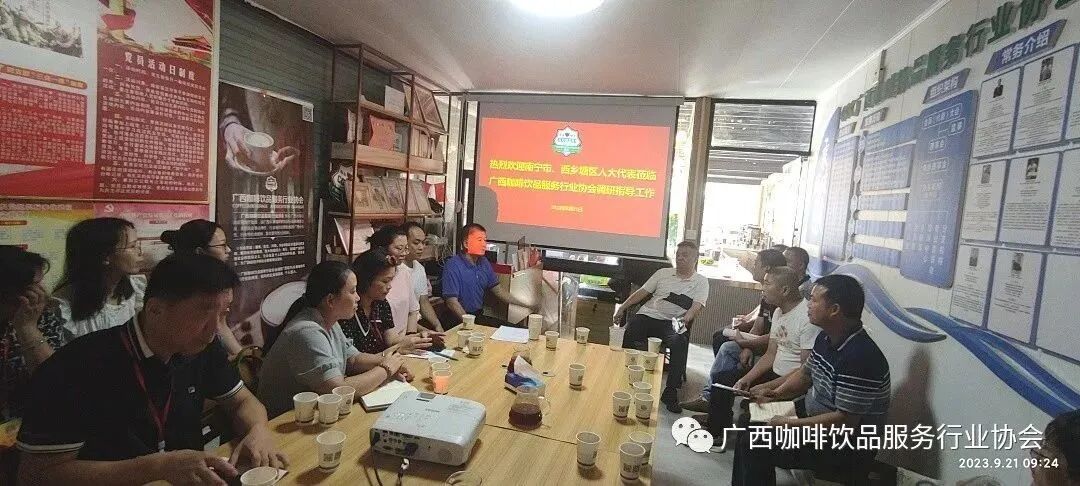 2023年9月21日上午,由华强街道办组织的南宁市、西乡塘区人大代表一行11人莅临广西咖啡饮品服务行业协会开展“混合编组、多级联动、履职为民”主题活动专题调研”,围绕“优化营商环境,助力高质量发展”主题开展沟通座谈会,了解协会运作中遇到的难点痛点、会员单位企业经营状况及困难。