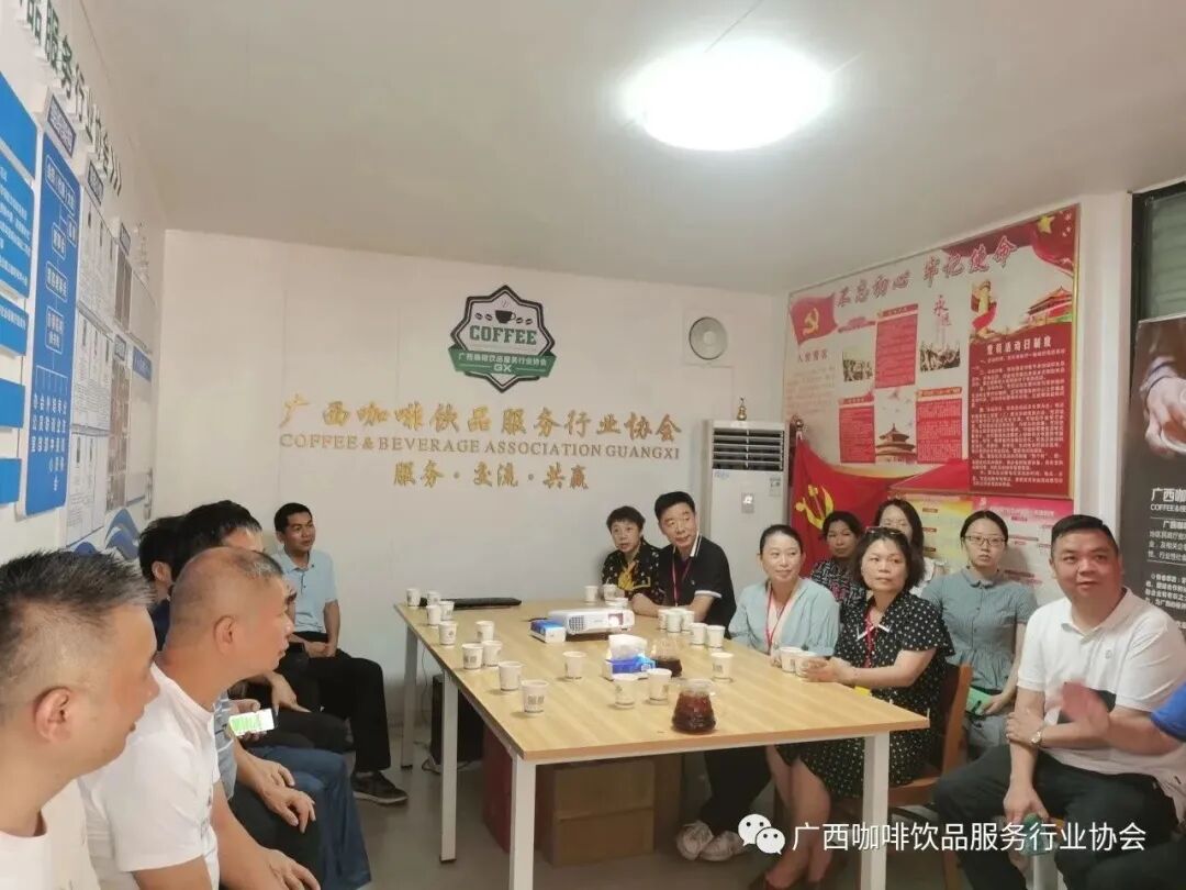 广西咖啡饮品服务行业协会参加调研座谈会的有党支部书记玉保钢,常务副会长兼秘书长刘维松,常务副会长杨勇、黄伟志、李科民、李相友、梁超军。