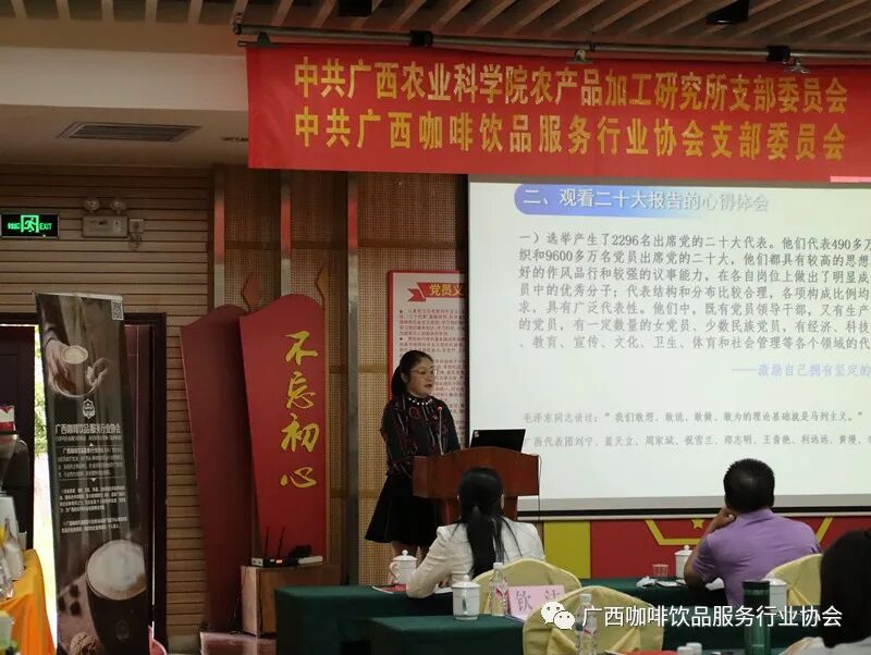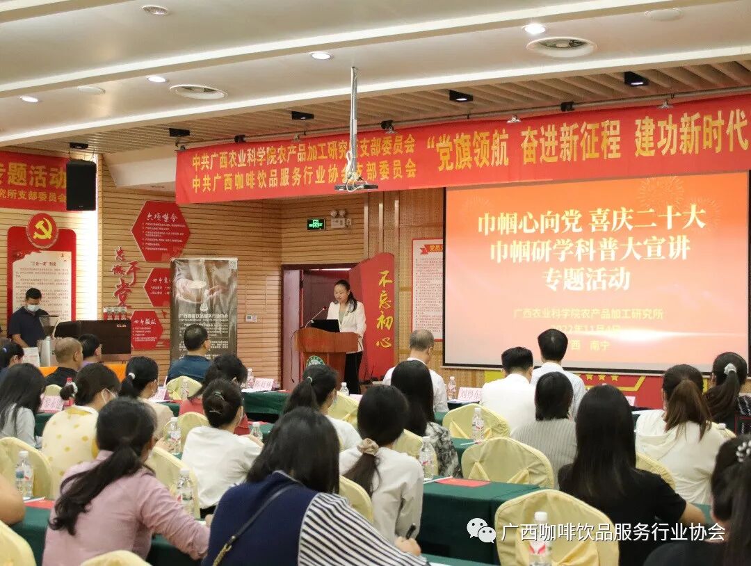 点击左下角阅读原文链接为广西农科院农产品加工所新闻标题:加工所党支部联合咖啡协会党支部开展学习党的二十大精神主题党日暨巾帼研学科普大宣讲专题活动。