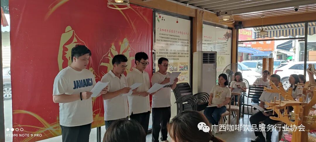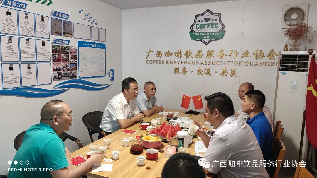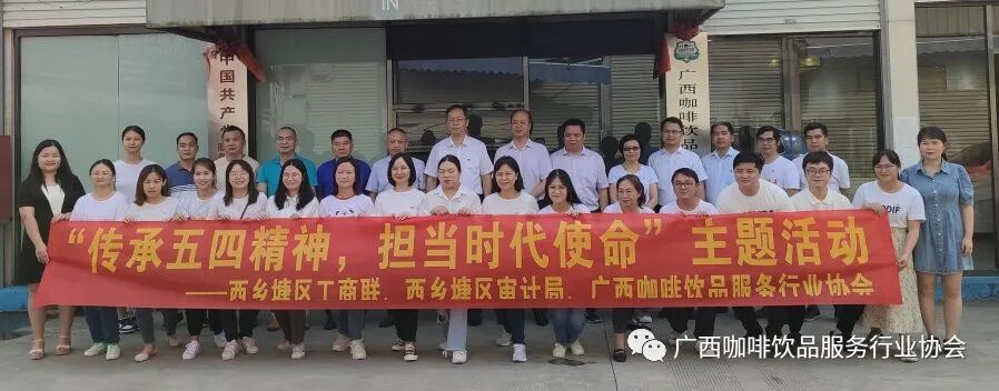 4月27日下午,广西咖啡饮品服务行业协会会同西乡塘区工商联、审计局在我会开展“传承‘五四’精神,担当时代使命”主题联建活动。西乡塘区委常委、区委统战部部长佘集辉,西乡塘区委统战部副部长、工商联党组书记罗忠彦,西乡塘区工商联党组成员、专职副主席蒋成钢,西乡塘区审计局局长雷素梅,广西咖啡饮品服务行业协会会长刘粤东,广西咖啡饮品服务行业协会党支部书记玉保钢,广西咖啡饮品服务行业协会秘书长刘维松等出席本次活动。