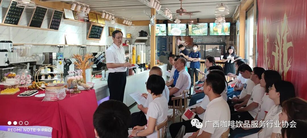 开展座谈会议,广西咖啡饮品服务行业协会会长刘粤东及会员单位代表向佘集辉部长、罗忠彦书记等城区领导汇报协会、企业在疫情防控常态化形式下的运营经营情况,佘集辉部长表示,城区很关心、关注非公企业的发展,希望各位企业家能坚持创新发展,开拓进取,把企业发展壮大,积极履行社会责任。