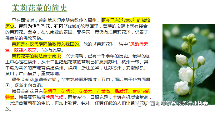 广西咖啡饮品服务行业协会在正值第三届世界茉莉花大会暨第十二届全国茉莉花茶交易博览会、2021年中国(横州)茉莉花文化节将于9月10-13日在广西南宁市和横州市两地举行之际,借此机会以“茉莉花”茶之名举行一场分享会。