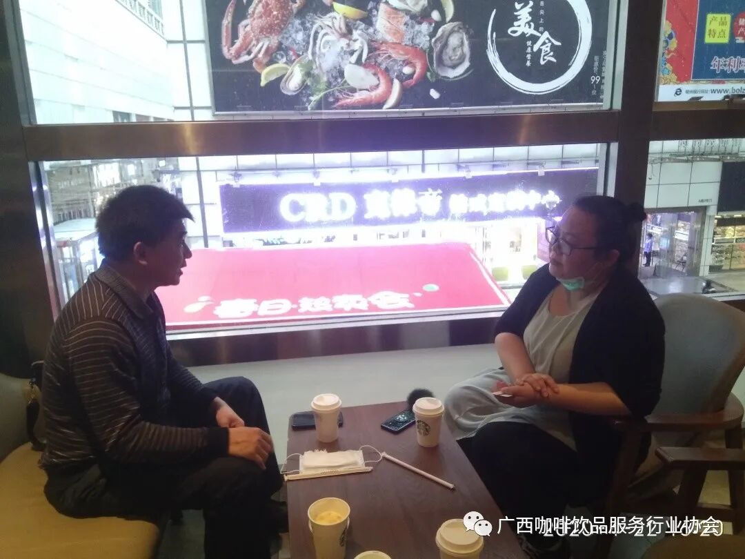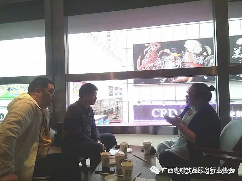 4月22日下午,在南宁悦荟广场(原万达广场)星巴克咖啡,广西咖啡饮品服务行业协会党支部书记玉保钢、常务副会长兼秘书长刘维松等应约拜访全球最大的咖啡连锁店,受到广西区域负责人陈总热情的接待。