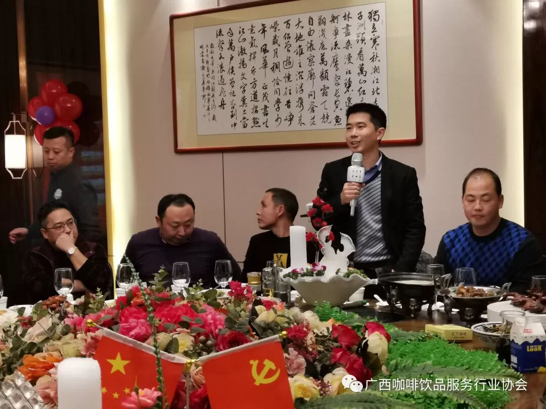 接着协会理事长、党支部书记玉保钢作了重要讲话,充分肯定了过去一年广西咖啡饮品服务行业协会取得的成绩,过去的一年协会发挥党支部的战斗堡垒作用和党员先锋模范作用,团结带领会员,渡难关共发展成绩斐然。并希望在新的一年里,我们将孕育新的梦想,承载新的希望。把协会的功能和企业的作用发挥好,运用好,开创协会新局面,续写协会的新篇章,发扬成绩攻坚克难在各方面工作更上一层楼,为建设壮美广西、强首府作出应有的努力和贡献。