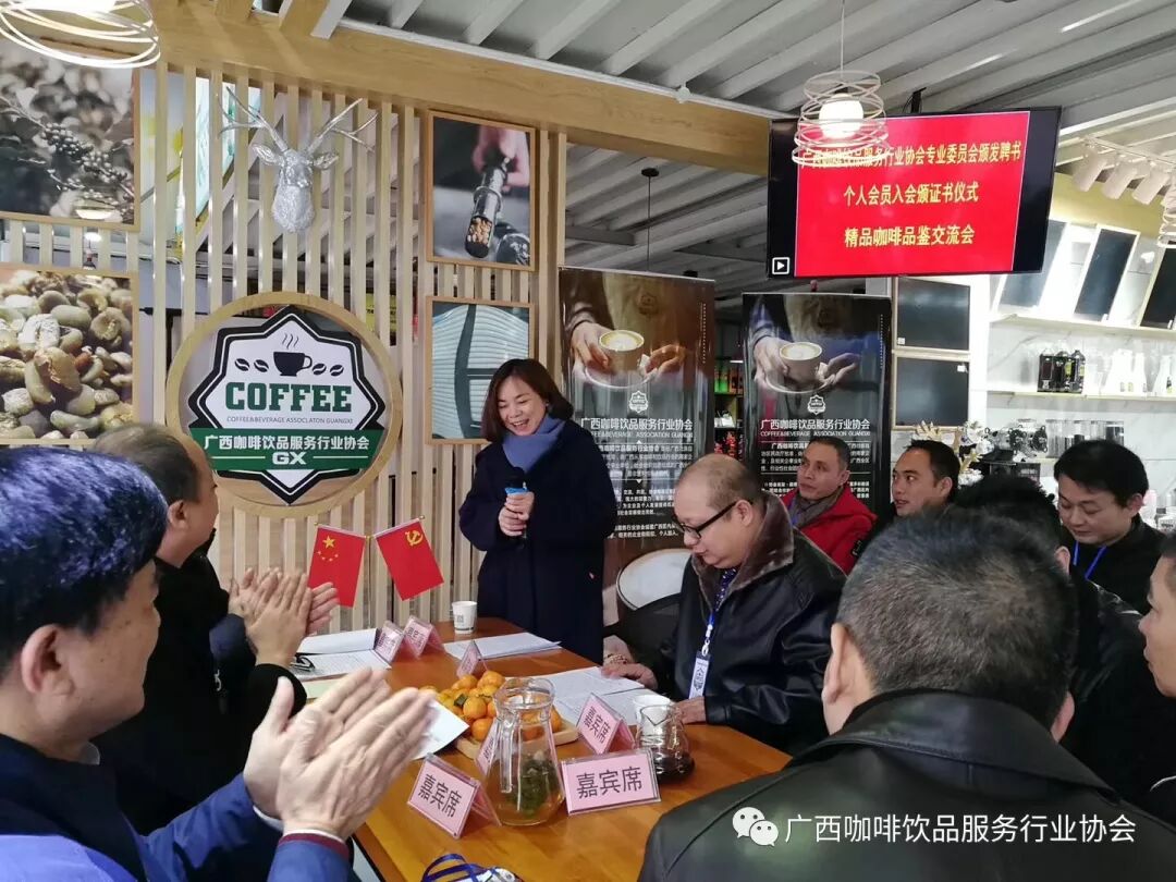 这是学习落实习近平总书记在民营企业座谈会上的讲话精神的分享会,也是广西咖啡饮品服务行业协会专业委员会颁发聘书及个人会员颁发证书仪式和精品咖啡品鉴交流会。会上鲜花装点,茶点精致,剔透的杯与器摆放整齐,咖啡人欢聚一堂,畅言过去一年的收获,和对新的一年的展望,特别是习近平总书记在民营企业座谈会上的讲话精神之后,让民营企业如沐春风,对未来的事业,信心百倍。