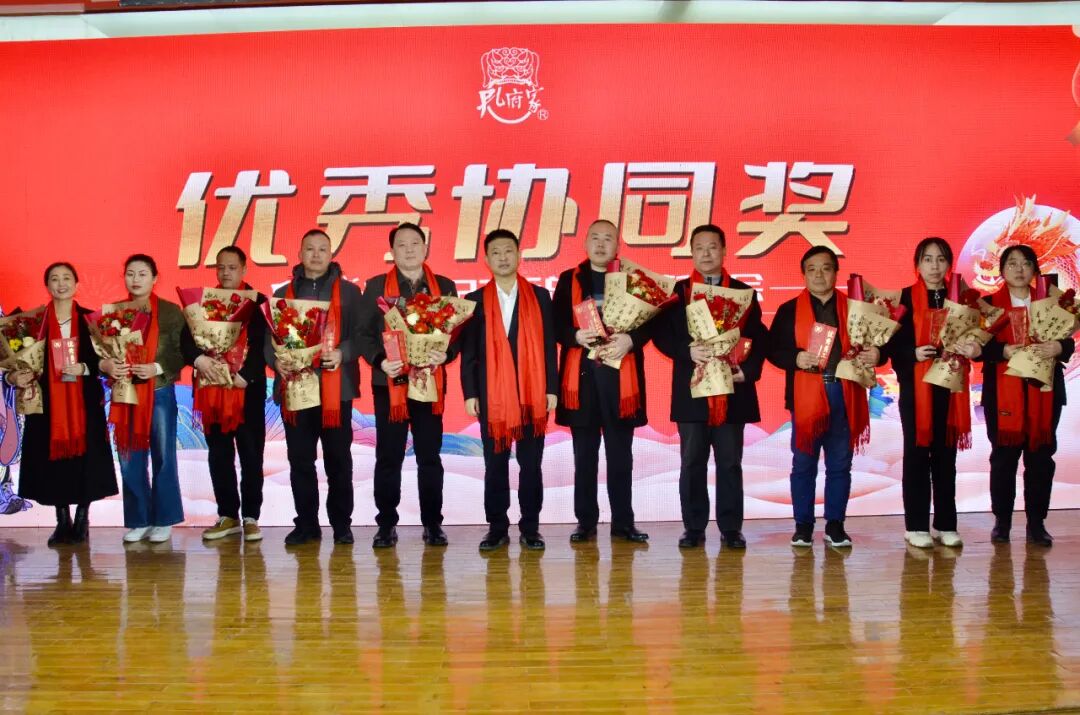 龙腾虎跃迎新春,盛世家酒绽芳华。3月6日,龙行龘龘,前程朤朤——孔府家2023年总结表彰大会在孔府家酒业隆重举行。孔府家酒业党委书记、董事长刘勇、党委副书记张希君、营销公司总经理李艳超、酿造公司总经理王安京、财务总监尹景先,以及销售公司、酿酒公司等系统、职能部门员工代表、2023年度先进个人、先进团队代表欢聚一堂,共同分享2023辉煌成就,展望2024美好未来,共谱老名酒复兴伟大华章。
