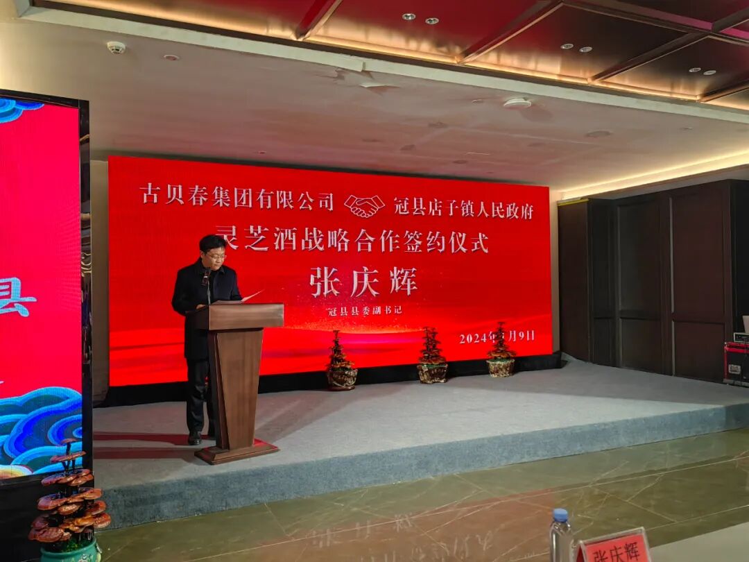1月9日,冠县市场古贝春之夜尊享品鉴会暨古贝春灵芝酒战略合作签约仪式在冠县灵芝文化主题酒店隆重举行。冠县县委副书记、县长张志刚,县委副书记张庆辉,古贝春集团党委副书记、总经理张洪昌,冠县古贝春旗舰店总经理冯向荣以及冠县部分优秀企业负责人欢聚一堂,共话友谊,共谋发展。共同见证了古贝春集团与冠县店子镇人民政府灵芝酒战略合作签约的重要时刻。