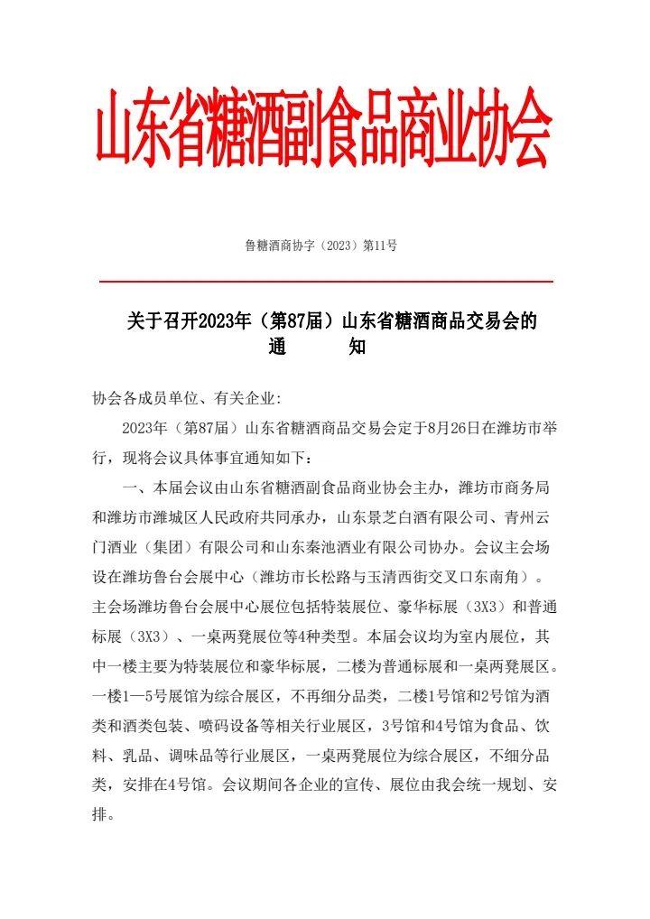 关于召开2023年(第87届)山东省糖酒商品交易会的通知