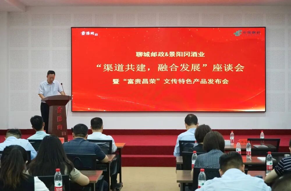 5月19日,中国邮政聊城分公司与景阳冈酒业“渠道共建、融合发展”座谈会暨“富贵昌荣”文传特色产品发布会在景阳冈酒业正德堂会议室隆重举行。