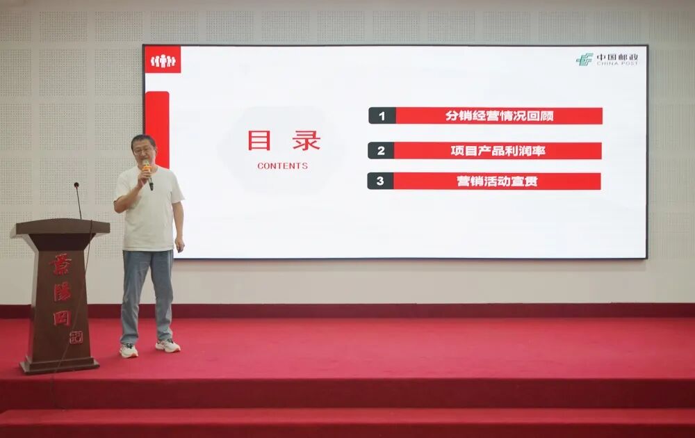 中国邮政聊城分公司文传渠道部项目经理刘超详细介绍了“富贵昌荣”文传特色产品的营销方案,明确了营销任务,制定了营销目标和奖励方案。