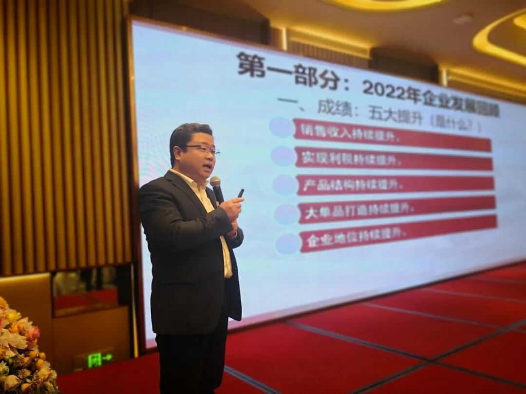 发布会上,吴修刚副总经理在致辞中介绍了2022年泰山酒业的发展情况和卓越成绩,他以“五大提升”对泰山酒业过去一年的营销工作进行了细致分析和全面总结,以“五个要有”来落实部署2023年泰酒营销工作重心,并向现场嘉宾详细解读了“儒风泰山酒”的文化内涵、设计理念、品质特色、产品定位和运作策略。