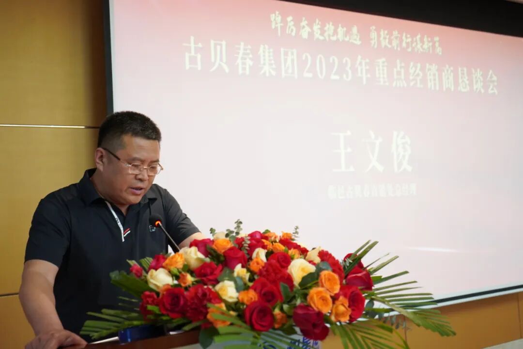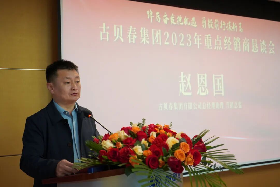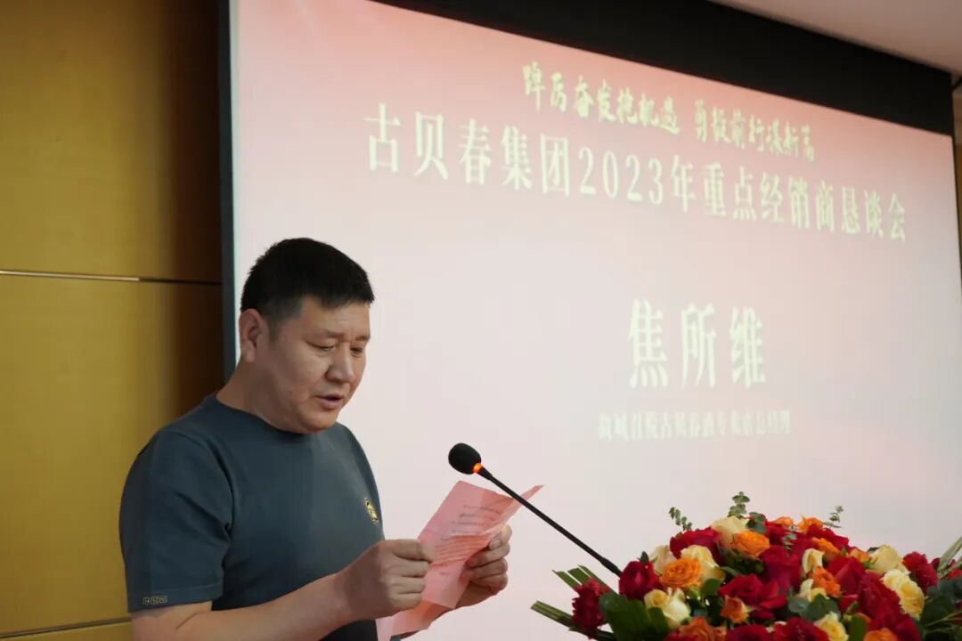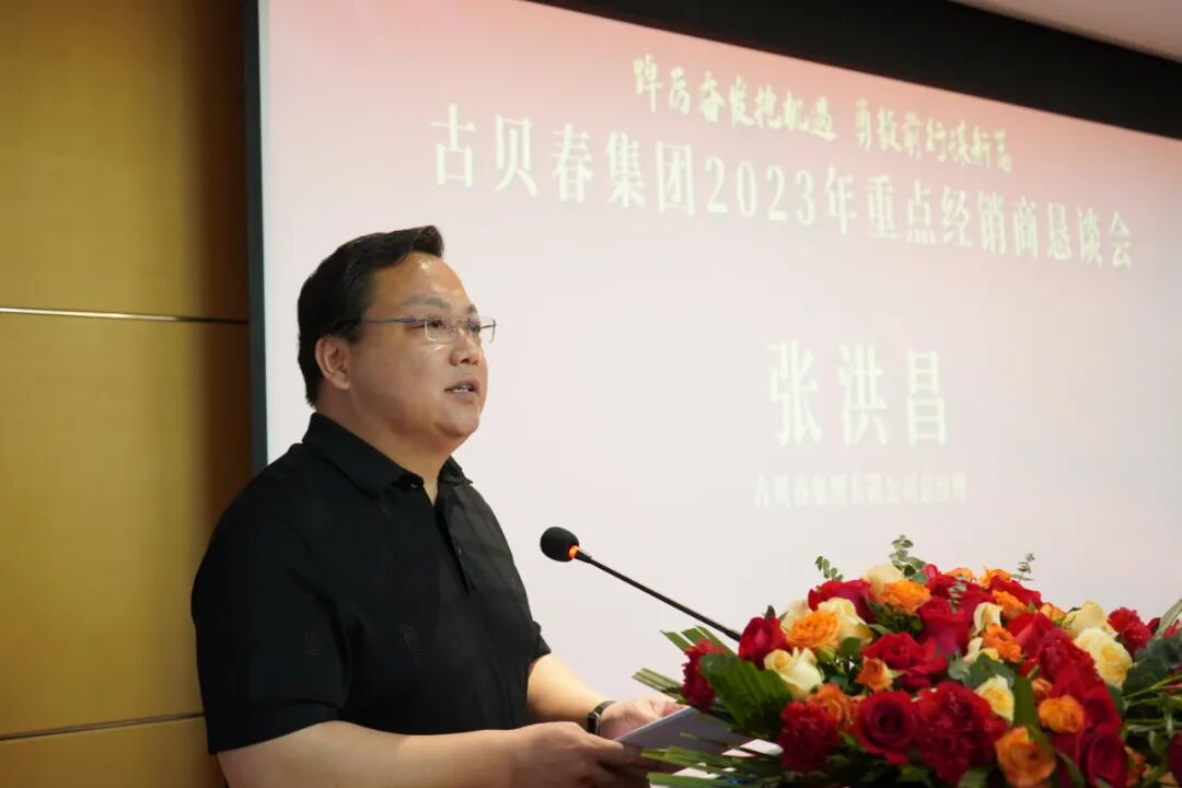 古贝春集团总经理、营销公司总经理张洪昌全面总结了2022年的营销工作经验,回顾了2023年春节后的主要工作,详细部署了下一步营销工作具体措施。对一直以来为古贝春发展辛勤耕耘的广大经销商朋友们表示衷心的感谢!为确保如期完成2023年目标,张总指出,接下来要从九个方面抓实、抓好:一是明确目标、统一思想,进一步加强营销管理,推动各项营销工作落实、落地;二是聚焦资源,深耕重点市场,深入推进“2+3+N”市场布局;三是科学规划,打造重点产品,持续增强公司核心竞争力,全面引导产品健康稳定发展;四是全面推进市场基础建设,由内向外,扎实推进,全面巩固品牌市场地位;五是全面提升营销服务工作,体现厂商一家,让大家感受到古贝春品牌的服务温度;六是全面聚焦投入力度,科学精准投放方式,灵活把握一地一策,进一步加强市场政策投入;七是精细化运作、精准化定位,从培育消费领袖入手,全面扎实推进渠道链建设;八是共建和谐共赢的市场秩序,确保价格稳定、确保经销商利益;九是文化引领、以活动为载体,打造古贝春特色品牌,全面提升品牌影响力。