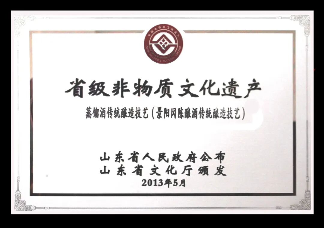 景阳冈陈酿酒传统酿造技艺历史悠久,可追溯至公元前2100年。其传承了宋代名酒“透瓶香”传统酿造技艺,是中国兼香型白酒酿造技艺的典型代表,特别是“酱头浓尾”的特点在兼香型白酒中独树一帜。景阳冈陈酿酒以精选小麦、高粱、玉米、大米和小米五种粮食为原料,以高中温麦曲为发酵剂,采用双轮底回沙发酵法,清蒸混烧、分段馏酒,酒体具有微黄透明、幽雅细腻、浓酱谐调、醇厚丰满、回味悠长之特点。该酒酱香中有浓香的芳津,浓香中有酱香的韵味,蕴含丰富的文化价值,体现了鲜明的地域文化特色。景阳冈陈酿酒传统酿造技艺于2013年入选“省级非物质文化遗产”。