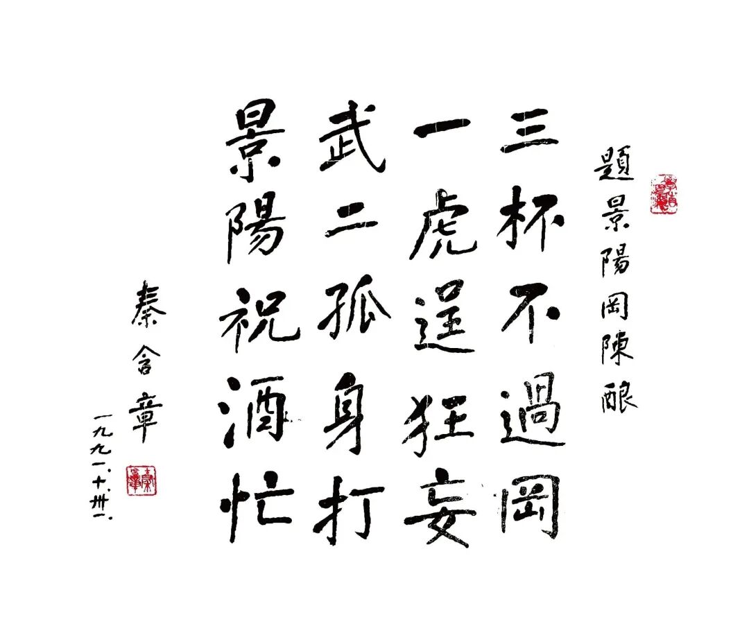 作为“中国酒界泰斗”,秦含章先生在他112岁的传奇生命旅程中,超70载都深耕于酒行业。1991年10月31日,秦含章先生在品鉴景阳冈陈酿后题词:“三杯不过冈,一虎逞狂妄,武二孤身打,景阳祝酒忙。”再现了英雄武松的气魄与形象。在酒界泰斗秦含章先生的眼中,景阳冈酒与英雄密不可分,可以说,景阳冈品牌与英雄精神结下了跨越千年的不解情结。