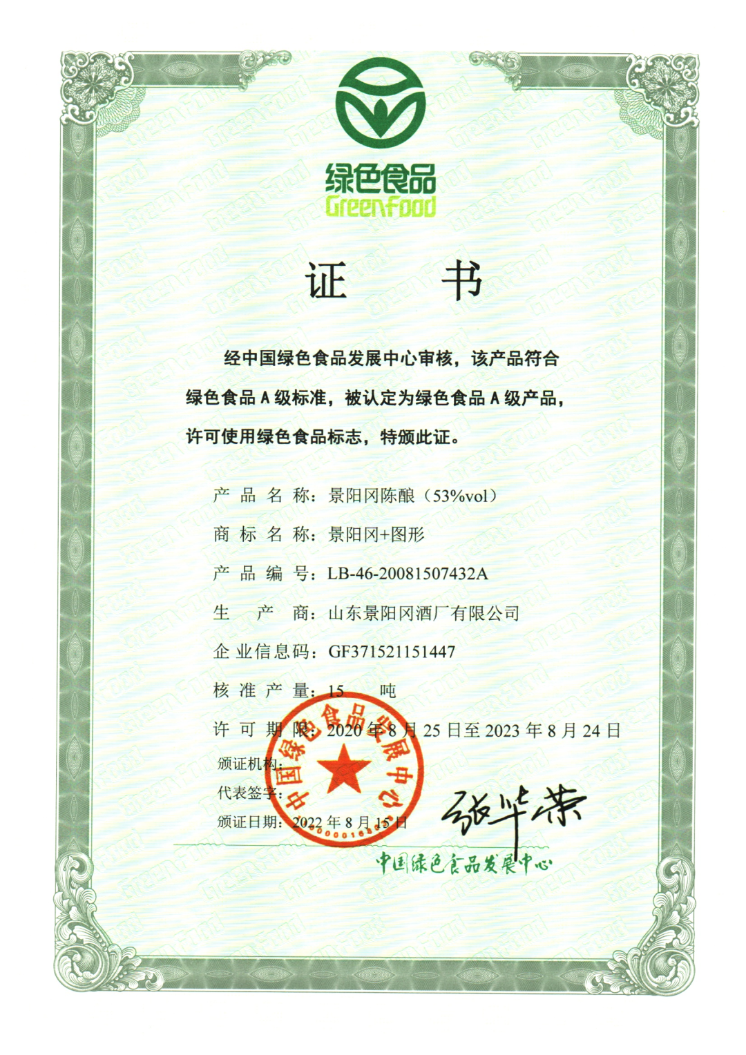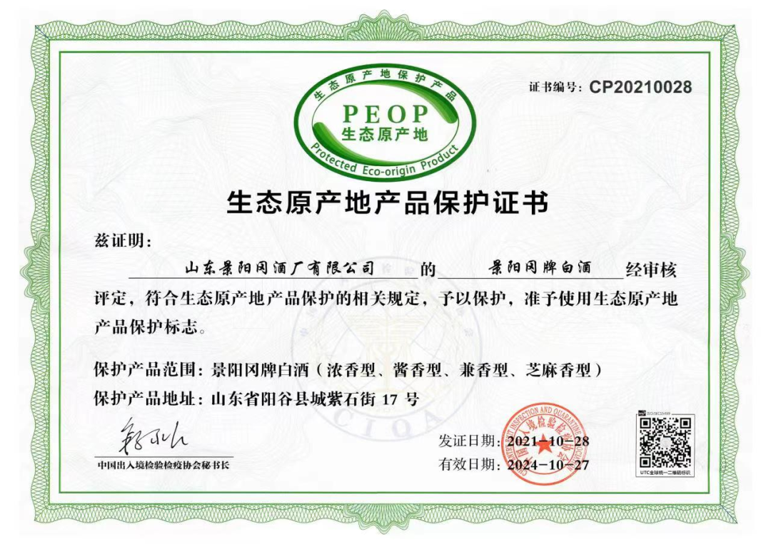 景阳冈系列产品先后被评为“绿色食品”“地理标志保护产品”“生态原产地保护产品。