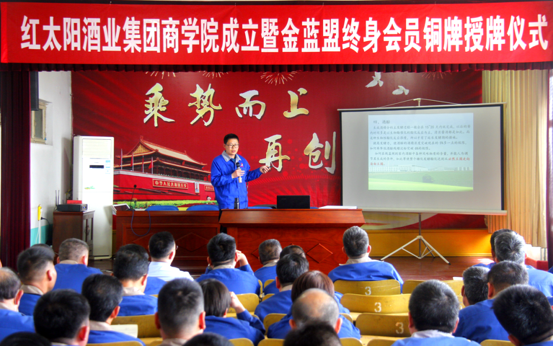在仪式现场上,红太阳酒业集团商学院还进行了首期专项培训,针对销售技能和管理技能进行培训学习,课程涉及营销突围、企业管理、白酒知识等多方面内容,丰富了学员的理论知识,也极大鼓舞了团队上下为实现经营目标而共同努力的士气和信心。