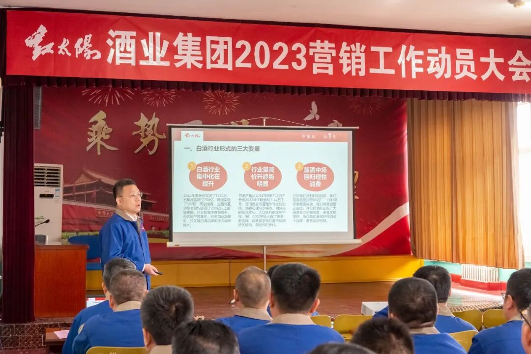 在红太阳酒业产品势能的上升期和赶超发展的关键期,动员大会的成功召开,既是一次细化目标、落实任务、强化执行的工作部署会,也是一次凝心聚力、鼓舞士气、团结奋进的思想动员会,不仅极大提振了营销团队的信心,也为红太阳酒业2023年的市场攻坚指明了路径与方向。 当下,中国白酒消费品牌化、口碑度、集中性的趋势愈发明显,品牌形象的塑造与提升,已成为白酒企业决胜未来的必由之路。因此,落实品牌推广、做实品牌培育,也成为红太阳酒业2023年营销工作的重中之重。
