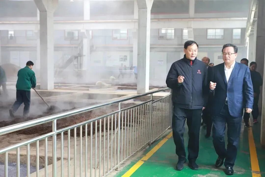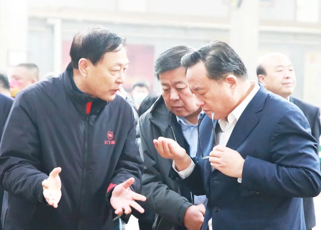 孙述涛主席听取了汲英民董事长关于企业历史及发展现状的汇报,并对云门近年来的发展表示认可。他表示,云门酒业作为传统产业的代表企业,要进一步整合资源、优化布局,全力推动企业绿色安全高质量发展。要立足资源优势,全力补短板、拉长板,聚焦信息化、数字化、智慧化,加快推动企业转型升级。
