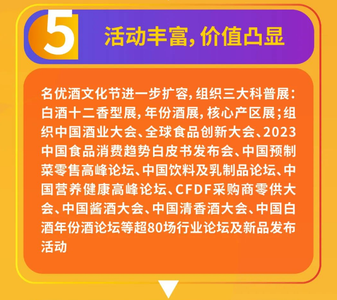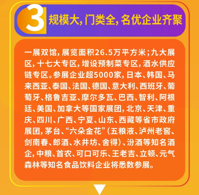 并设九大展区,十七大专区,增设预制菜专区,酒水供应链专区,参展企业将超过5000家。食品、酒类、调味品及相关产业的展商相聚成都,共襄盛会。