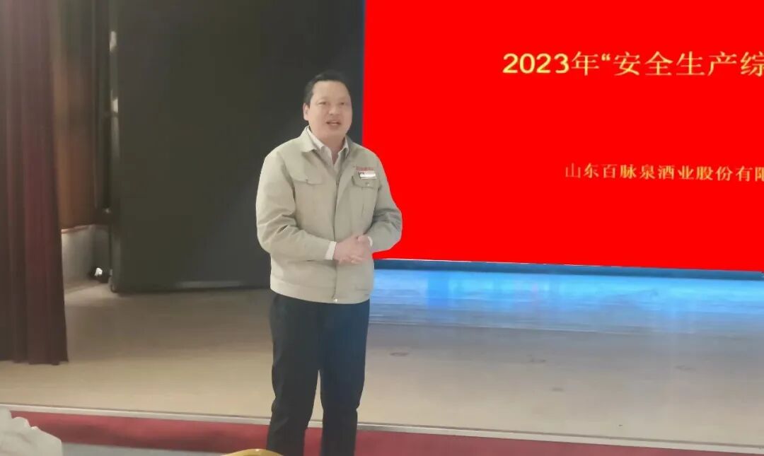 安全生产,重于泰山。为进一步强化企业安全生产主体责任落实,全面提高职工安全生产水平,3月3日下午,百脉泉酒业组织班组长以上及后勤管理人员开展2023年“安全生产综合培训”活动。百脉泉酒业副总经理颜承亮出席本次活动。