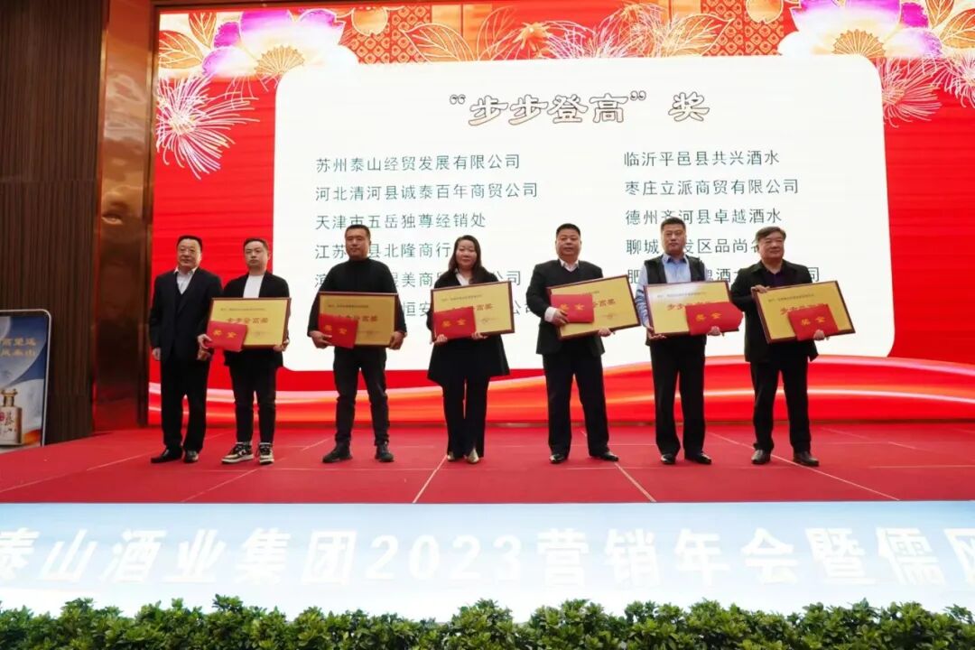 会议期间,为了表达对经销商合作伙伴的真诚谢意,泰山酒业还特别设定了“步步登高奖”,来表彰有着突出表现和卓越贡献的经销商。张铭新董事长亲自为获奖经销商颁发了奖牌和荣誉证书,极大鼓舞与激励了经销商携手并进,共创双赢的信心。