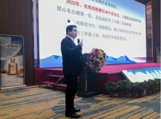 会上,泰山酒业副总经理、营销总监吴修刚作年度营销报告,他以“五大提升”对泰山酒业过去一年的营销工作进行了细致分析和全面总结,并以“五个要有”来落实部署2023年泰酒营销工作重心。
