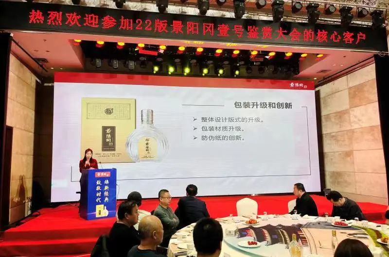 景阳冈酒品牌大使李敬燕详细讲解了景阳冈壹号的品牌基因延伸,介绍了22版景阳冈壹号在包装、瓶体、酒水方面的升级。