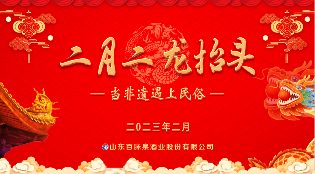 多彩民俗二月二,舞龙欢庆龙抬头。2月19日,由山东百脉泉酒业股份有限公司、济南市章丘区文化馆、章丘区非遗联盟联合主办的“当非遗遇上民俗”文化展,在百脉泉酒文化旅游区热闹上演。