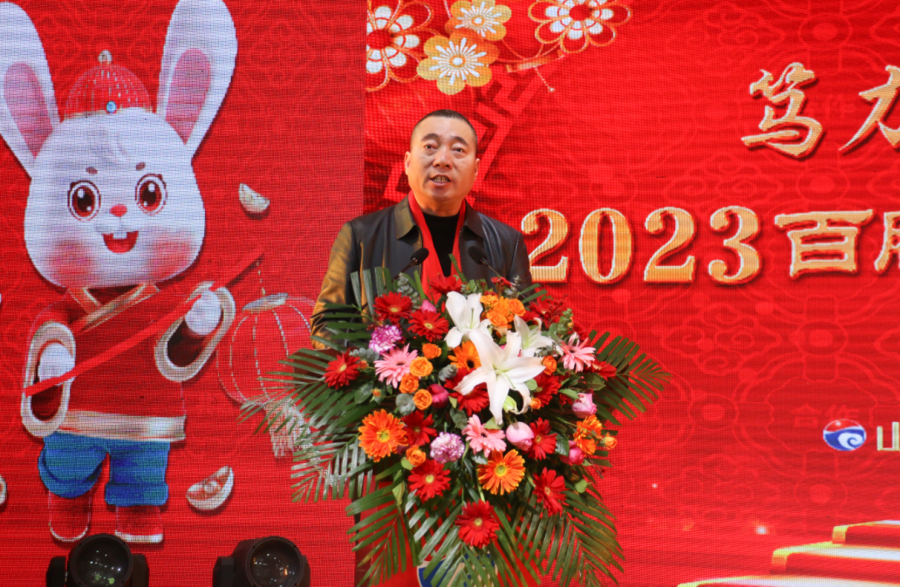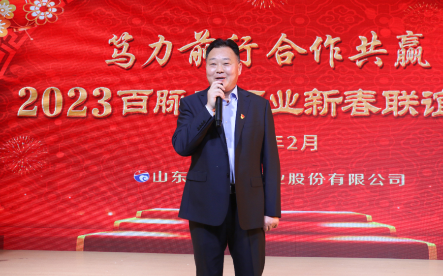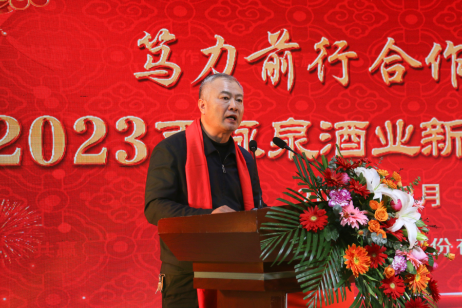 济南市食品工业协会会长、百脉泉酒业党委书记、董事长李成新在欢迎辞中代表全体干部员工向各位领导和嘉宾致以了新春的问候和诚挚的祝福,对他们多年来持续的支持和帮助表示了衷心的感谢。他表示:多年来,在推动产业发展和行业提升的历史进程中,厂商双方相互联接、彼此赋能、上下联动,形成了互利共赢的合作生态、缔结了同向发力的命运共同体。特别是2023年兔年春节期间,在百脉泉酒业全体干部员工的共同努力下,在所有供应商和经销商大力支持下,百脉泉酒业圆满完成了春节备货生产、促销任务,销售收入和收款数额再创历史新高,实现了“首季开门红”,为2023年全年工作的开展起了好头,布了好局。