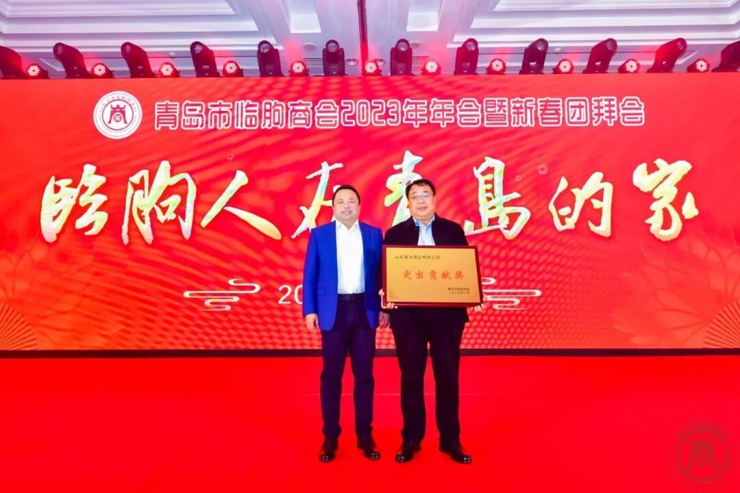 山东秦池酒业有限公司荣获“突出贡献奖”并全程赞助招待用酒,总经理王建伟出席本次活动并领奖。同时,王总表达了青岛临朐商会对秦池的认可、关心与支持的感谢!对商会和友好商会参会人员发出了诚挚邀请!进而对秦池赞助产品做了简要介绍,希望各位参会人员多提宝贵意见!
