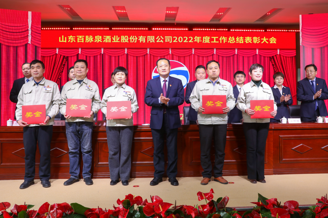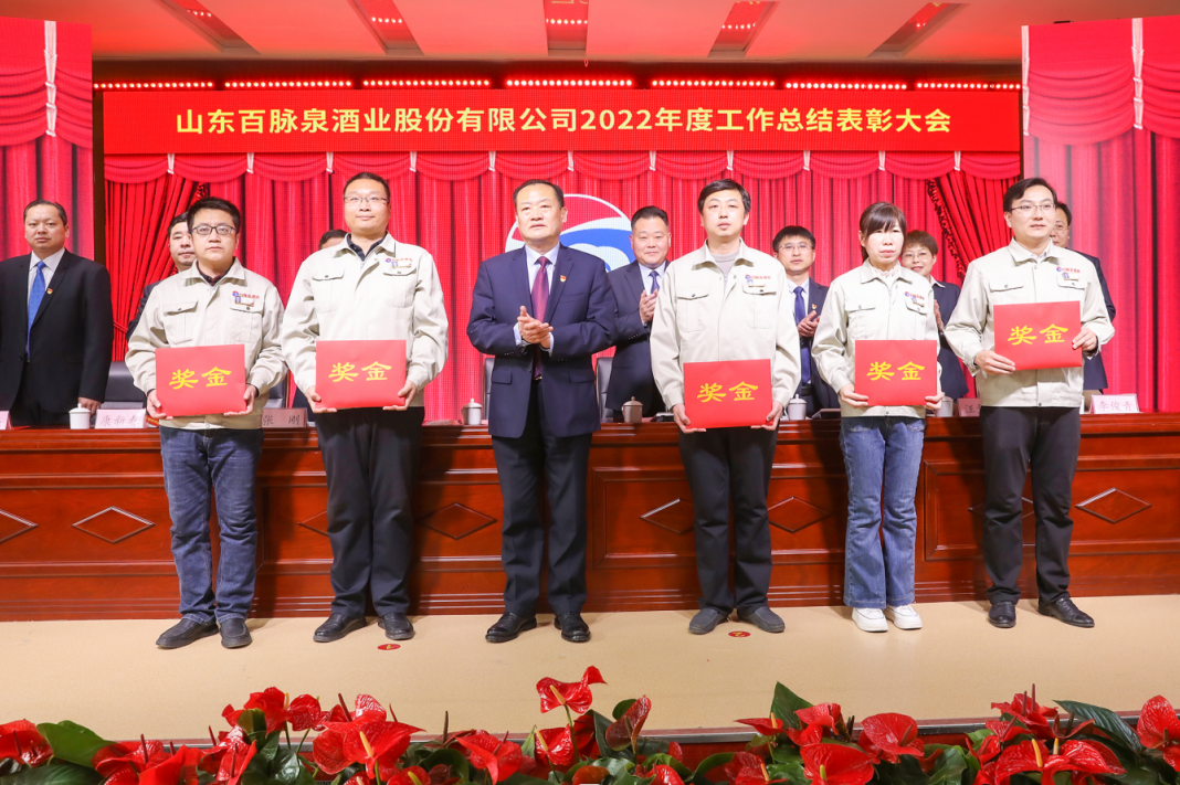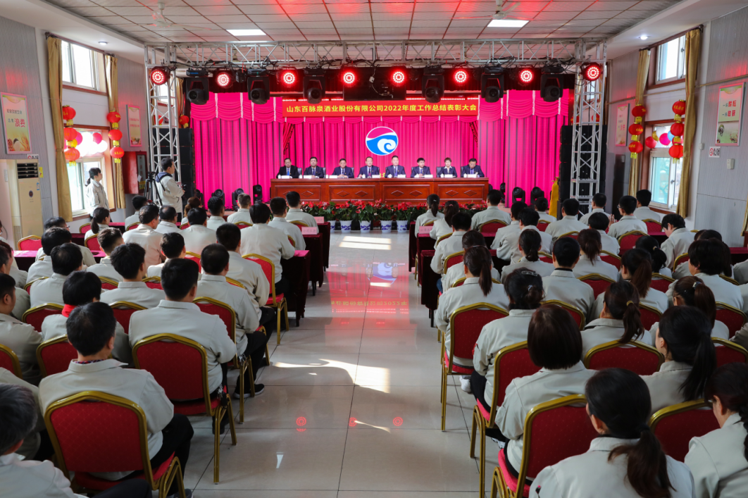人勤春来早,奋斗正当时。2月10日下午,山东百脉泉酒业股份有限公司2022年度工作总结大会暨劳模、工匠表彰大会在公司多功能厅隆重举行。会议对2022年的工作做了总结,对一年来在各岗位上做出突出业绩的先进集体和个人进行了表彰,全面部署了2023年的整体工作。