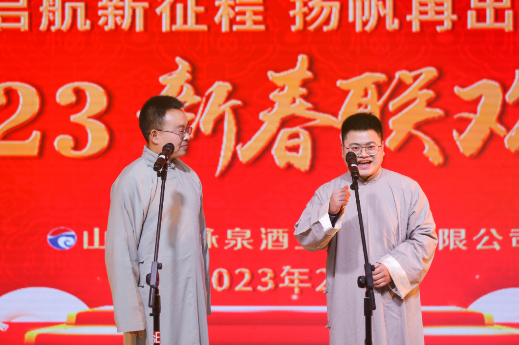 大会结束后,章丘区委常委、副区长李琦,区人大常委会党组副书记、副主任王健,区政协副主席韩军,原区人大副主任李万百,原区政协副主席郭现和,区工信局党组书记、局长杨殿学,区总工会副主席陈彬,区工信局机关党委书记、副局长孙左江,区工信工委主席程凤丽,区工信局二级调研员高进,章丘区企业家协会代表,《齐鲁晚报》、济南电视台、新黄河等省市级媒体,公司领导班子成员及全体干部员工一同观看了“百脉泉酒业2022大事记”和职工们自编自演的“启航新征程 扬帆再出发——2023新春联欢会”。联欢会节目都是来自一线员工结合公司实际及公司发展变化,自主编排,自我表演,从多角度、多种类形式展现百脉泉酒业人团结奋斗、脚踏实地、务实创新,在大浪淘沙的市场中顽强拼搏,奋勇争先的敬业精神及默默付出、不求回报的奉献精神。