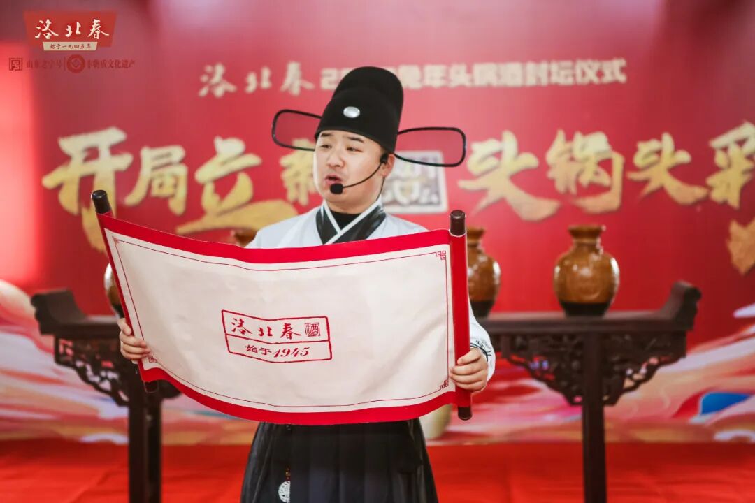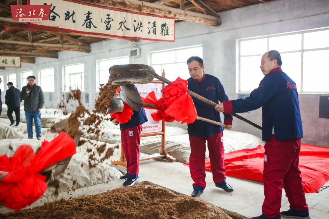 一声“开窖啦!”工匠代表喊起号子,“一锹起,春回大地,紫气东来;二锹起,头窖承运,头魁头彩;三锹起,天地同润,风华绝代”。洛北春头锅春酿正式开窖!
