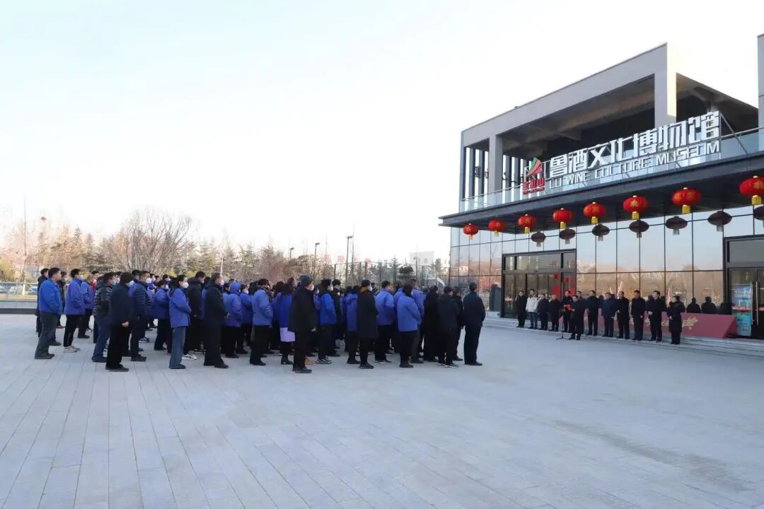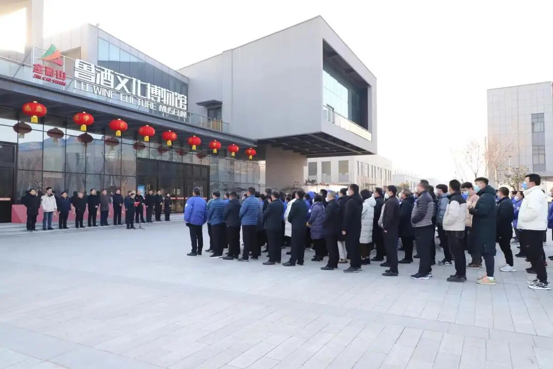 2023年1月27日(农历正月初六)上午九时,春节上班第一天,山东金彩山酒业有限公司全体干部员工精神抖擞,大家开开心心的相聚在鲁酒文化博物馆前,举行2023年春节团拜会。公司领导干部与员工互致春节祝福。