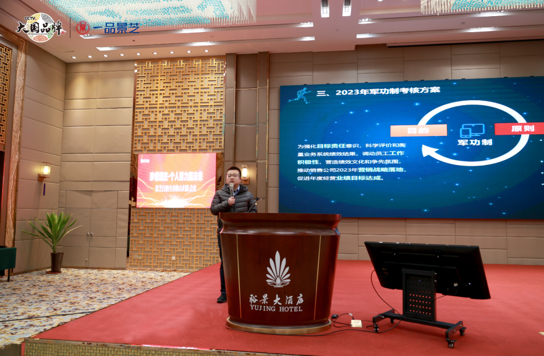 会上,销售公司副总经理兼销售公司人力行政总监焦文辉代表公司讲解分享《2023年军功制考核方案》,进一步强化目标责任意识,营造绩效文化和争先氛围,调动员工积极性,推动2023年营销战略落地和年度业绩目标达成。
