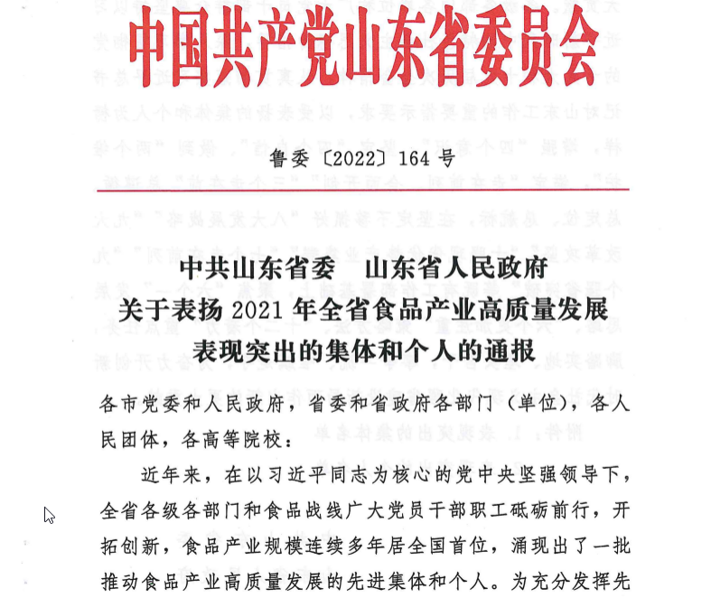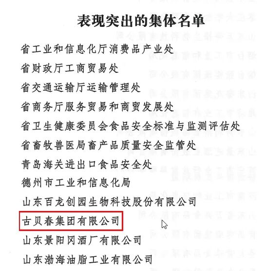 古贝春集团被中共山东省委、山东省人民政府表彰为“2021年全省食品产业高质量发展表现突出集体”。