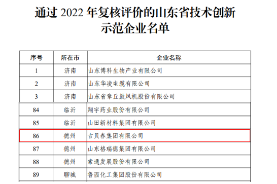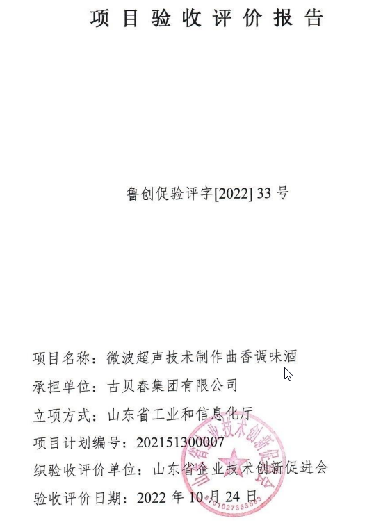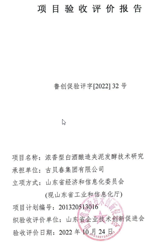 在省工信厅组织的2022年山东省技术创新示范企业复核评价工作中,古贝春集团完成并通过复核评价。