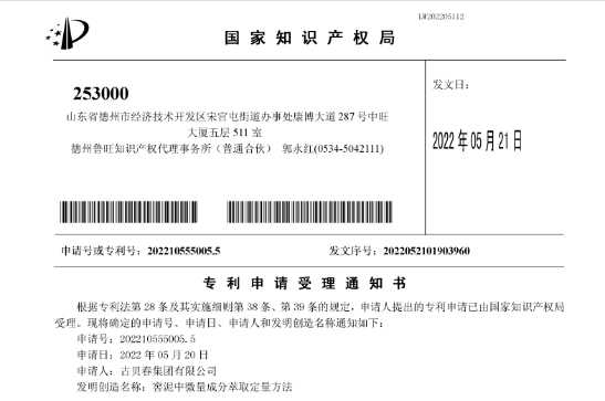 古贝春集团科创小组技术创新项目中的创新实验方法《窖泥中微量成分萃取定量方法》申请发明专利1项;
