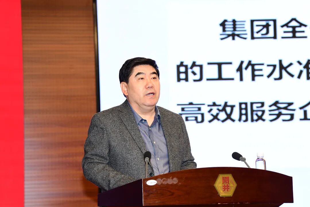 站在宏观环境和战略全局的高度,国井集团总裁赵纪文从当前宏观形势、行业发展、集团自身情况等方面深入剖析,对新一阶段的集团发展提出了三点要求。他强调:面对复杂多变的市场环境,我们更要守正创新,精耕细作,扎实做好企业各项工作;以市场为导向,坚持有解思维,革新求变,降本增效,凝聚发展势能;解放思想,整合资源,提高品牌势能,为市场营销赋能。