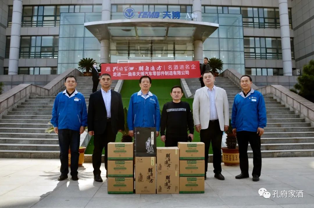 为加强企业间交流,增进友好关系,更好促进企业跨界合作,10月21日上午,孔府家酒业董事长刘勇营销公司总经理李艳超济宁北大区总监颜丙利一行走进曲阜天博汽车零部件制造有限公司,开展名酒进名企交流活动,共商合作,共叙友谊。