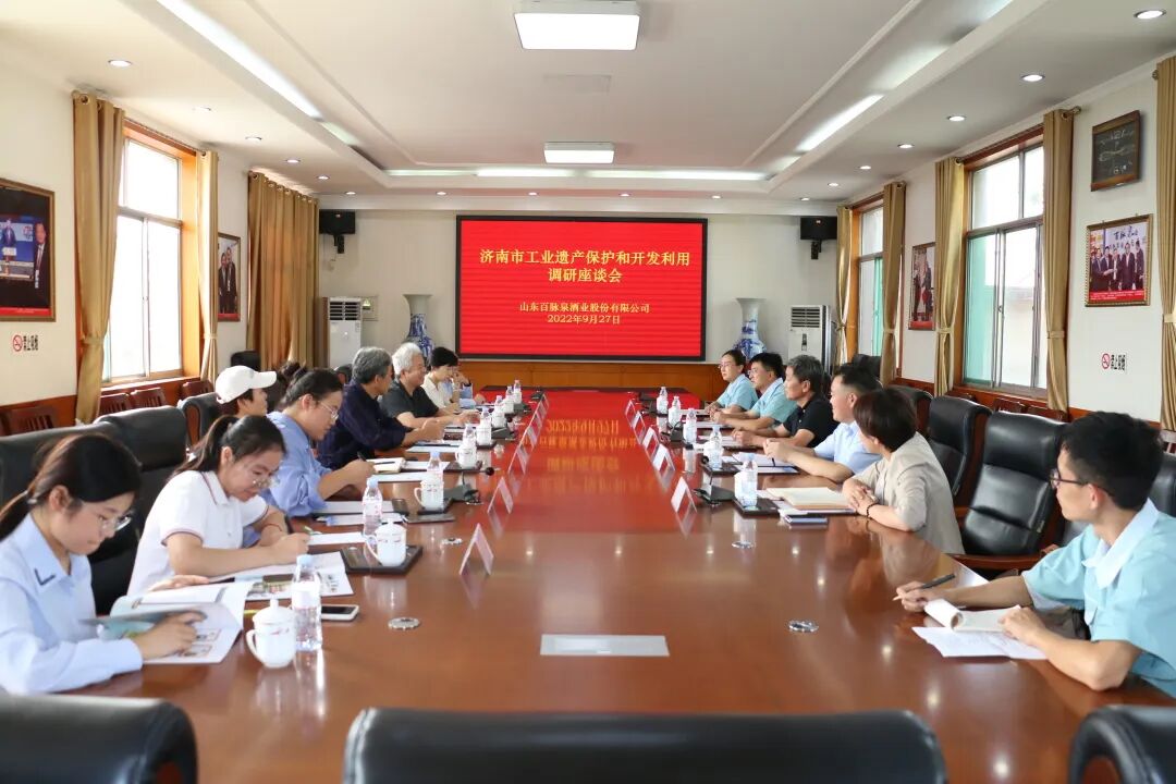 2022年9月27日,济南市发改委、教育局、工信局、文旅局、济南市工程咨询院、山东大学、山东建筑大学等部门和院校领导,莅临山东百脉泉酒业股份有限公司,调研工业遗产保护和开发利用工作。章丘区发改局主要领导及公司总经理马业准、副总经理杜祥宝等陪同调研。
