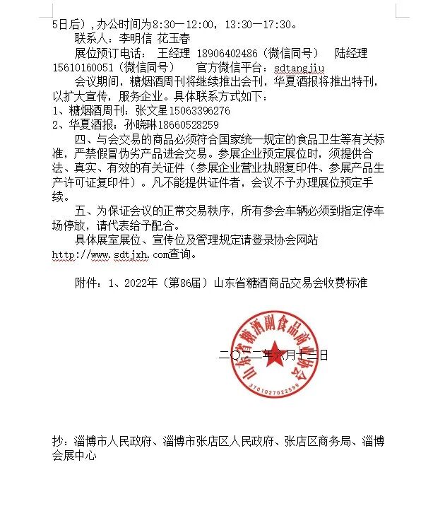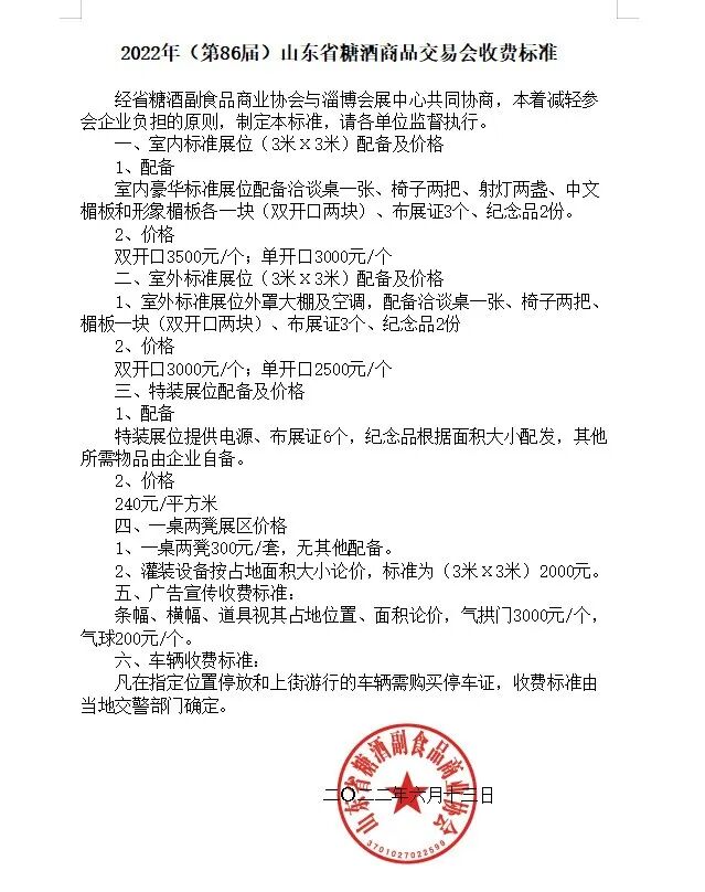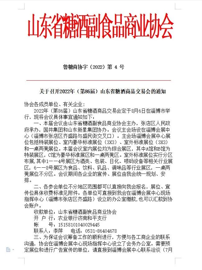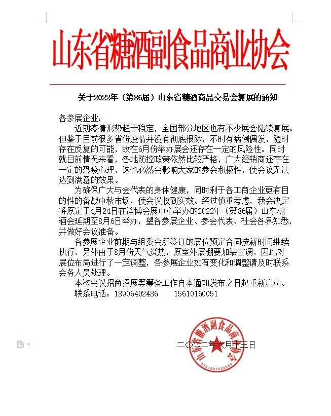 关于2022年(第86届)山东省糖酒商品交易会复展的通知